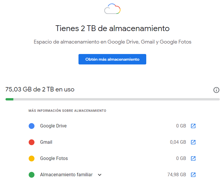 - Expande el almacenamiento de google fotos, drive y gmail. Accede al plan de 2 TB adicionales, cada usuario le corresponde 400 gigas.